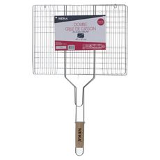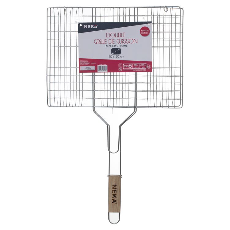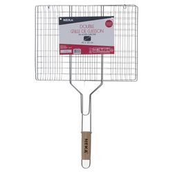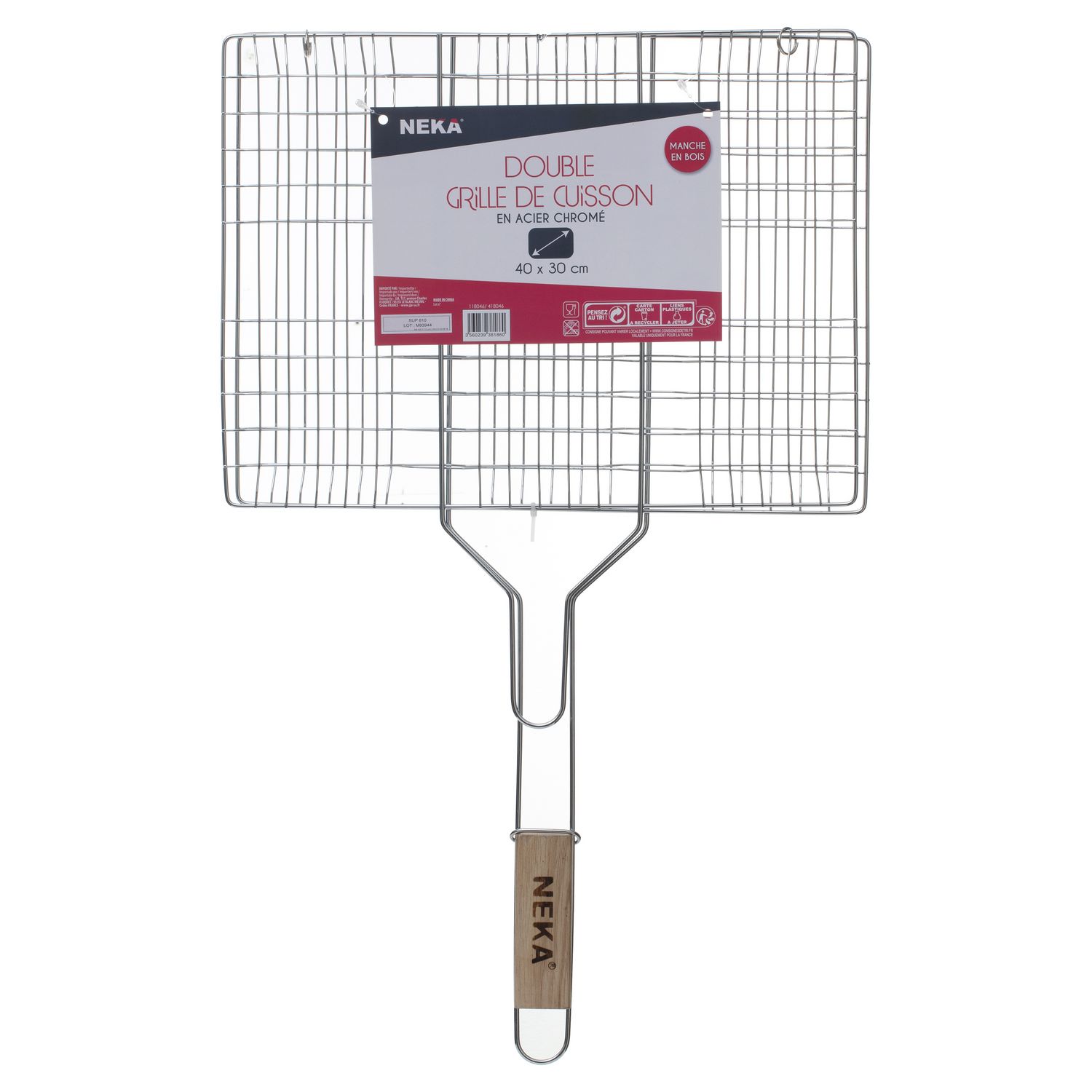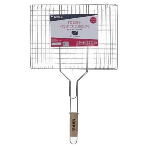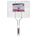 Grille BBQ rectangulaire 30 x 40 cm chrome acier/bois