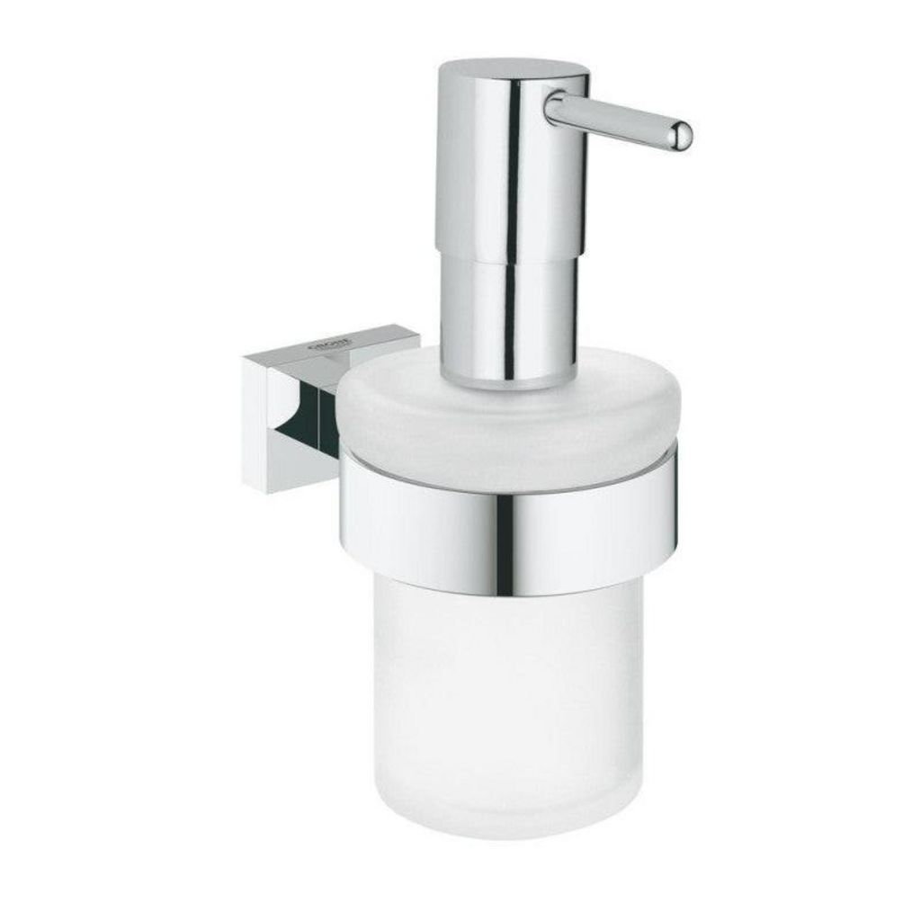 Distributeur de savon avec support ESSENTIALS CUBE GROHE 40756001 160 ml - chrome :Colour: ChroméVerre / métalQuantité 160 mlComposé de :Support (40 508)Distributeur de savon (40 394)Fixations cachéesGROHE Brillance Longue Durée Brillance éclatante année après année