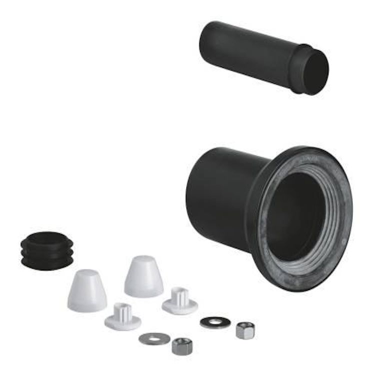Grohe 37311K00 Contenu : tube d'alimentation Ø 45 mm, manchon d'évacuation Ø 90 mm, 150 mm de longueur et cache-boulons. - Â