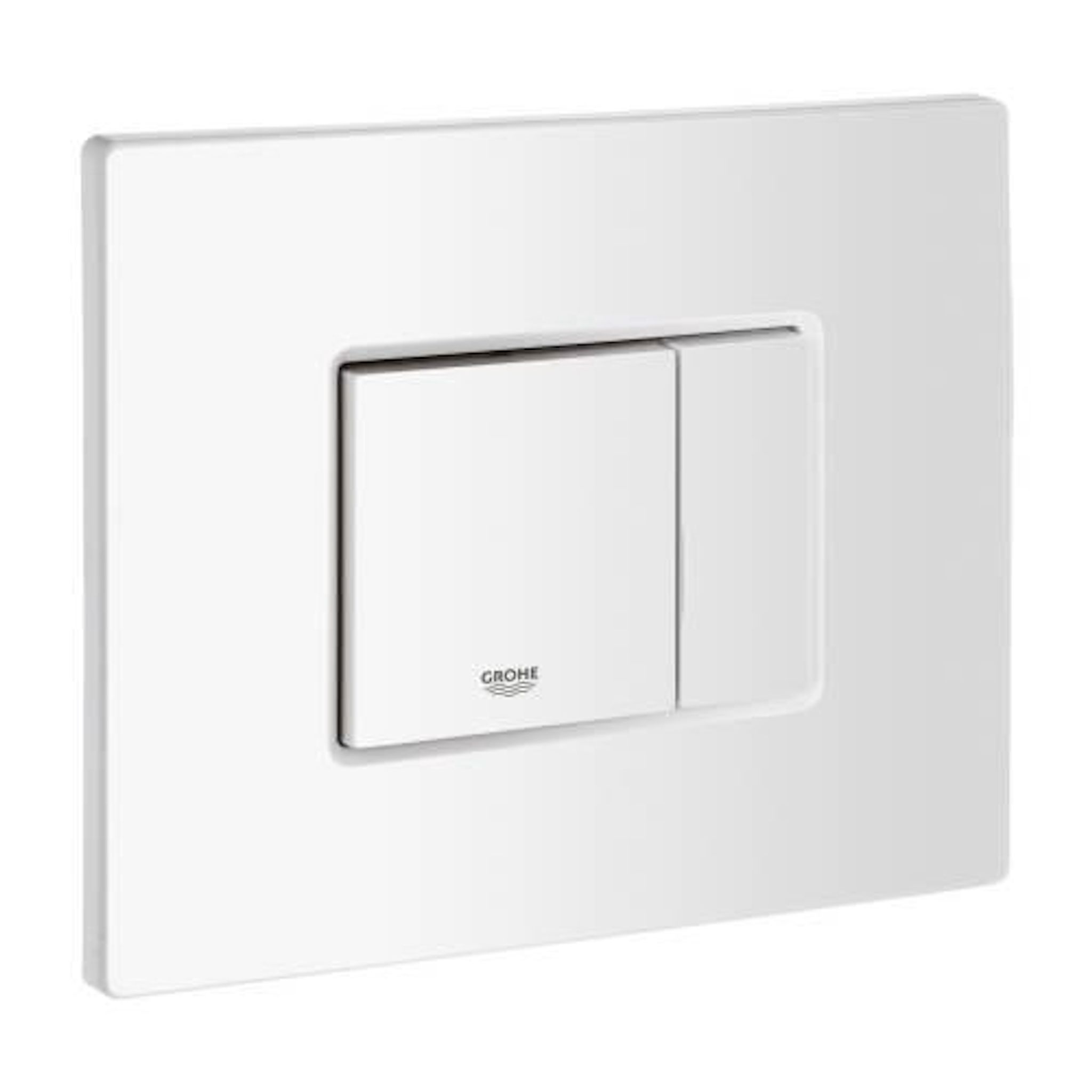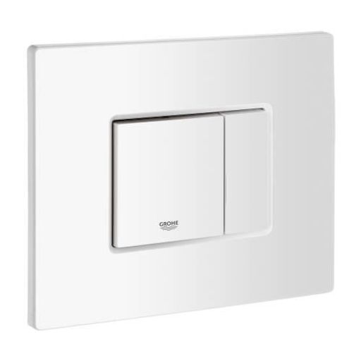Grohe 38732SH0 Un design altique et décontracté allié à une technologie d'économie d'eau innovante à un prix abordable !Avec la plaque Skate Cosmopolitan, GROHE, le leader mondial des équipements sanitaires, offre une technologie de chasse innovante. Cette plaque de commande en finition blanc alpin apporte une touche finale parfaite à toute salle de bains contemporaine au style décontracté. Elle est disponible en taille standard (156 x 197 x 10 mm) et dispose d'un revêtement résistant GROHE StarLight, durable et facile à nettoyer. Son utilisation est également écologique. Le système de chasse double vous permet de choisir un volume de chasse de 3 ou 6 litres (ou 3 et 4,5 litres, selon la céramique) et l'actionnement simultané des deux touches permet en outre d'interrompre une chasse complète. La technologie de chasse d'eau GROHE EcoJoy réduit votre consommation d'eau jusqu'à 50 %. L'installation, qui nécessite la petite trappe de visite standard, s'effectue simplement et sans outils. Plaque de commande GROHE Skate Cosmopolitan : un produit pour la salle de bains combinant un style sophistiqué à des performances exceptionnelles !