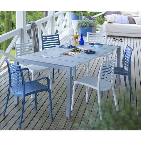 Table de jardin 190x100x74cm résine blanc bleu SUNDAY