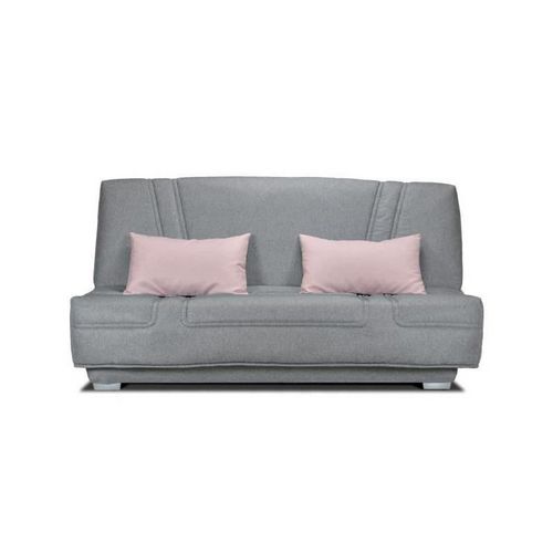 COMFORT BULTEX Banquette clic clac - Tissu Gris + Coussins deco rose - L193 x P9