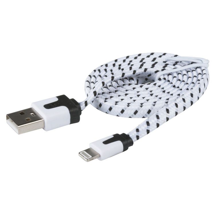 Câble de charge USB vers Lightning - Mâle/mâle - 2 m - Blanc/noir