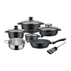 GSW - 414562 - Batterie - Aluminium Forgé Massif GOURMET GRANIT - 10pcs - Induction - Revetement VITAFLON GRANIT