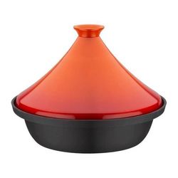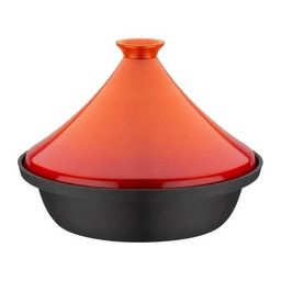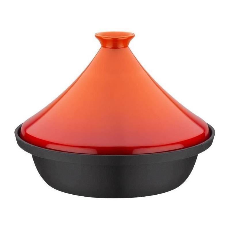 Tajine fonte massive - GSW - 30 x 22 cm - Couvercle céramique - Induction - Orange