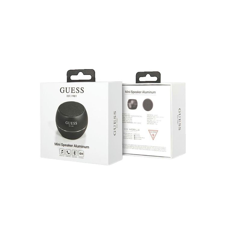 Découvrez l'enceinte portable Bluetooth Mini de Guess, compacte et élégante, idéale pour écouter votre musique préférée partout. Cette enceinte noire en aluminium durable offre une puissance de 3W et une autonomie jusqu'à 4 heures. Grâce à la technologie Bluetooth 5.0, profitez d'une connexion sans