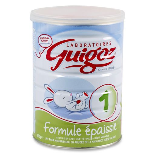 Pourquoi GUIGOZ Formule épaissie 1? Les Laboratoires Guigoz ont développé GUIGOZ Formule épaissie 1*, une formule qui convient à l'alimentation particulière du nourrisson dès la naissance quand il n'est pas allaité jusqu'à 6 mois**. Parlez-en à votre médecin. * A utiliser avec une tétine à débit variable. **Conformément à la réglementation. Lait pour nourrisson en poudre de la naissance jusqu'à 6 mois