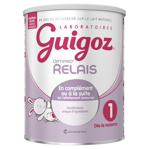 Pourquoi GUIGOZ® OPTIPRO® RELAIS 1 ? Inspirés par 60 ans de recherche sur le lait maternel, les Laboratoires Guigoz® ont développé Guigoz® Optipro® Relais 1 qui répond aux besoins spécifiques des bébés*, de la naissance jusqu'à 6 mois, en complément de l'allaitement maternel ou en relais quand ils ne sont plus allaités. Parlez-en à votre médecin.*Conformément à la règlementation sur les préparations pour nourrissons. Remplace la formule Evolia .