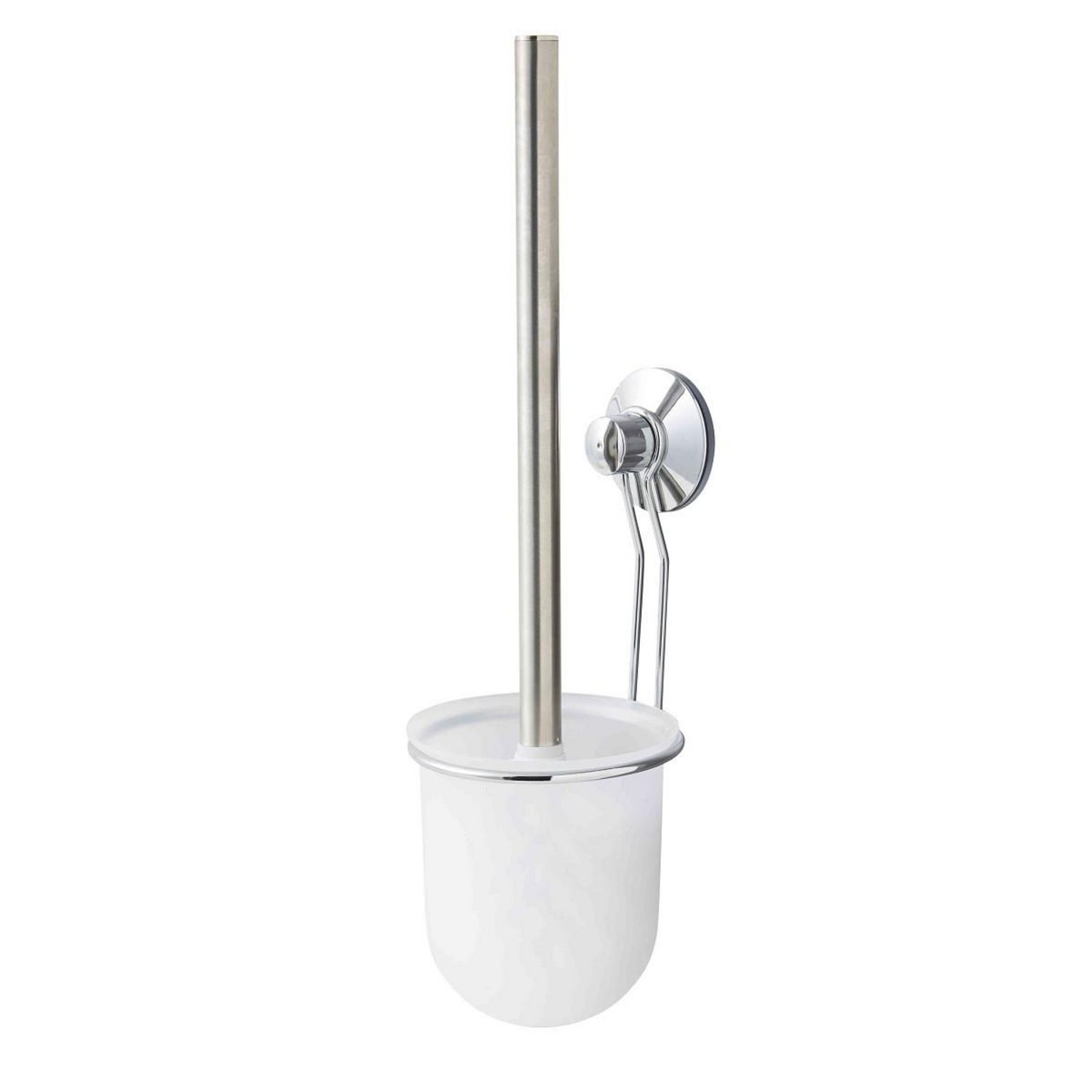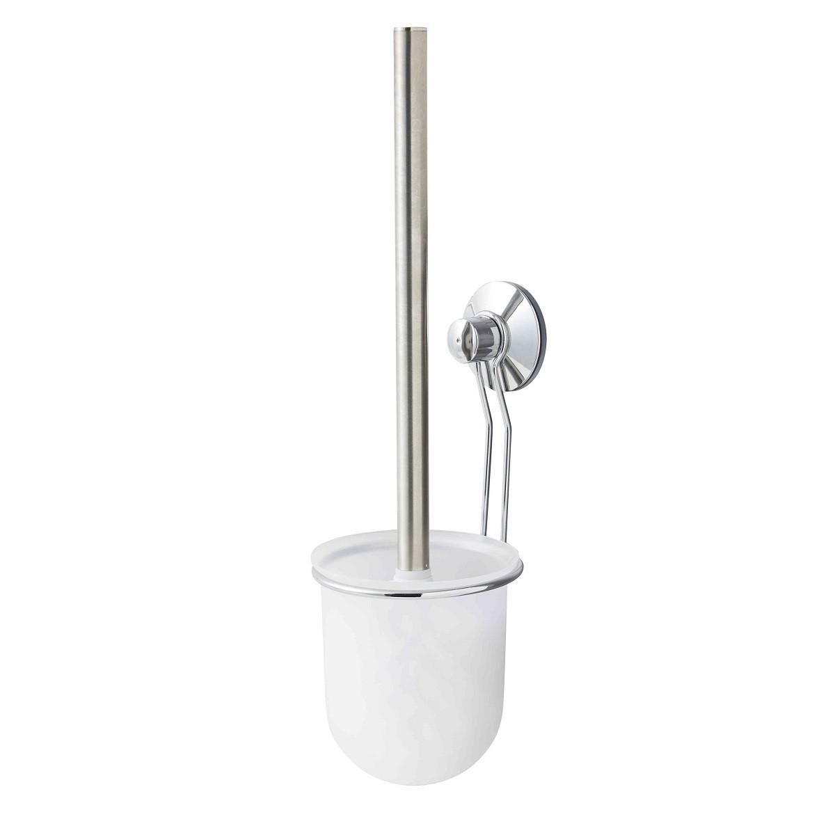 Cette brosse WC à ventouse d'air est conçue en ABS chromé argent.CARACTERISTIQUES TECHNIQUES :Dimensions : 10,5x10,5x38cmCouleur: Blanc et inoxMatière: ABS chromé argentPoids : 0.23kg