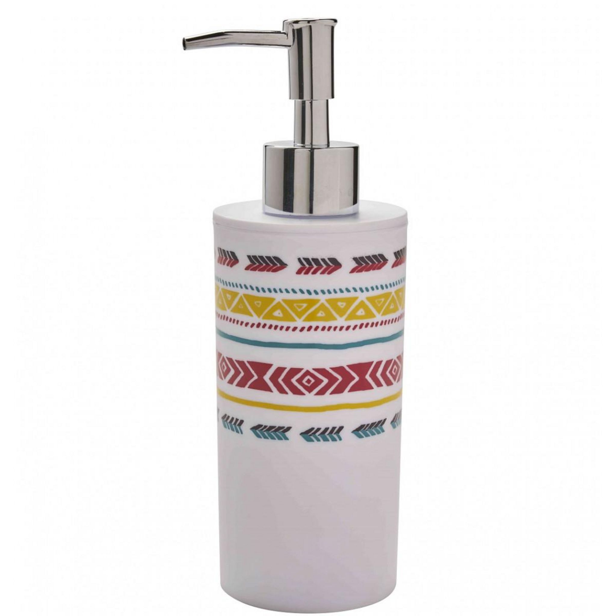 Cette gamme est conçue pour transformer vos accessoires de salle de bains en objet de décoration. Ce distributeur de savon est conçu en plastique avec des motifs ethniques.