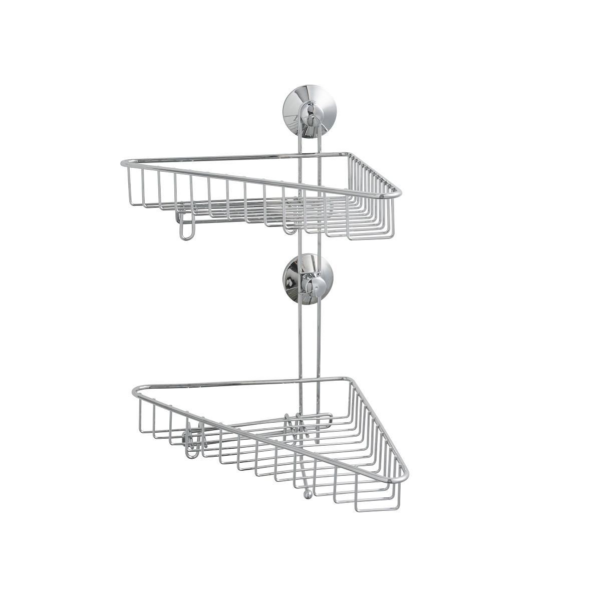 Cette double étagère de bain d'angle fait partie de la gamme CONNIE.Cette étagère de bain est conçue en ABS chromé argent inox, durable et facile d'entretien. Elle se fixe grâce à une ventouse à vide d'air et supporte jusqu'à quatre kilos. CARACTERISTIQUES PRODUIT:Dimensions : 23x26,5x41cmCouleur: I