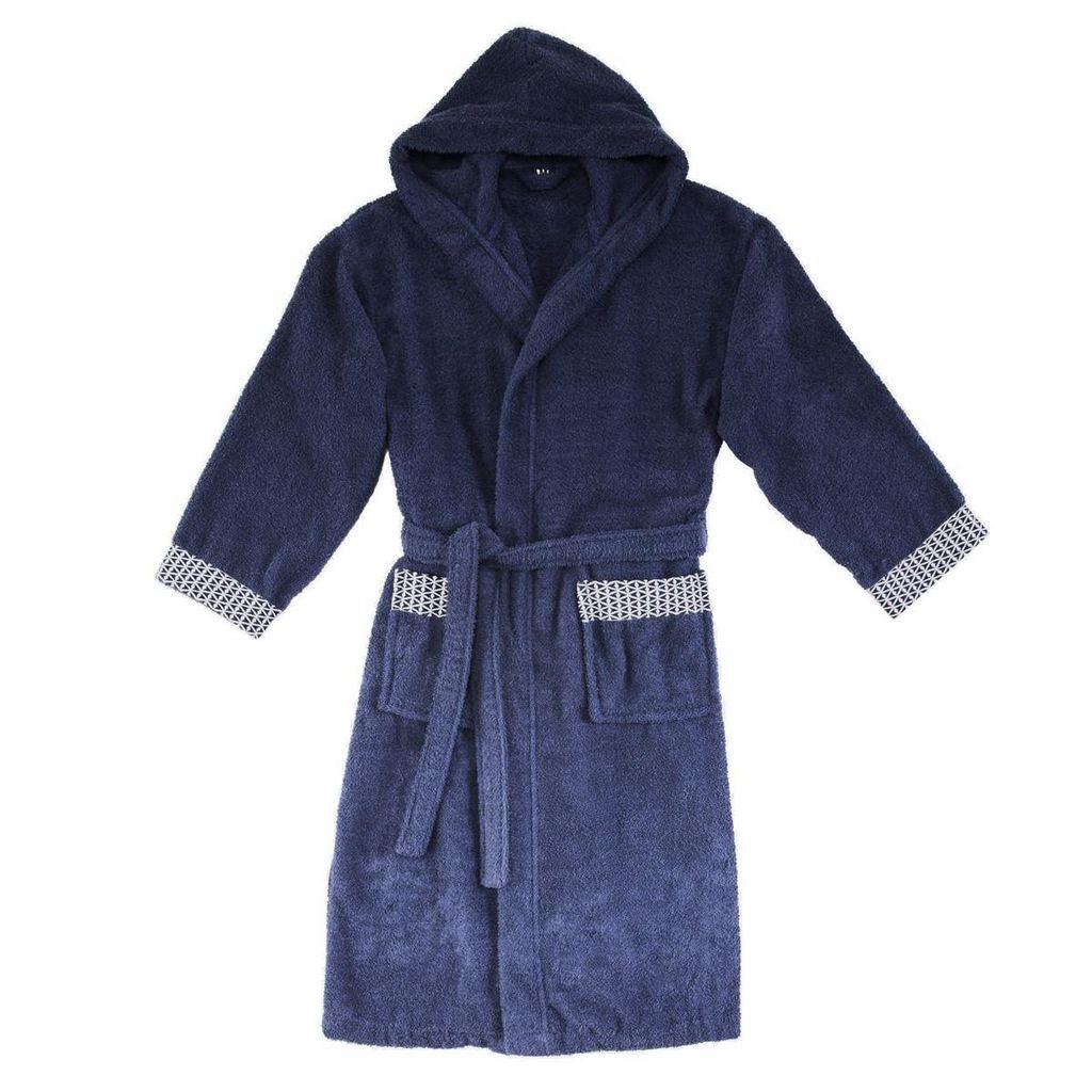 En éponge pur coton, ce peignoir allie confort et absorption. Avec capuche, il possède deux poches plaquées et une ceinture à nouer sous passants.