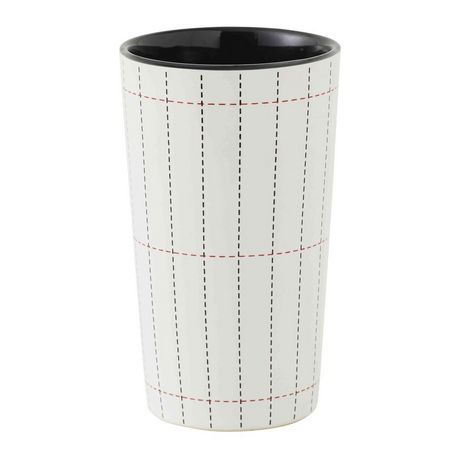 Cette gamme est conçue pour transformer vos accessoires de salle de bains en objet de décoration. Ce gobelet est conçu en céramique avec intérieur noir et motifs rayés.