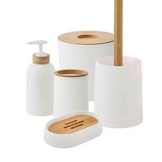 Set de salle de bain 28x31x31cm uni 5 pièces en bambou blanc