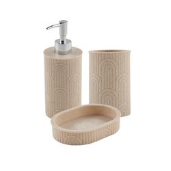 Set de salle de bain beige - RETRO - LEVASSEURCe set de salle de bain en céramique, fait partie de la gamme RETRO.Il contient un distributeur de savon, un porte savon et un porte brosse à dents.Cette gamme est conçue pour transformer vos accessoires de salle de bains en objet de décoration avec son