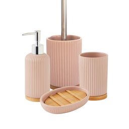 Set salle de bain strié 4 pièces céramique bambou rose