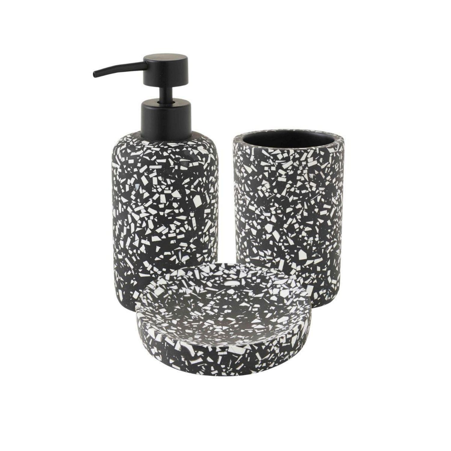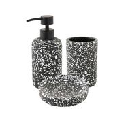 Set de salle de bain noir - TERRAZZO - LEVASSEURCe set de salle de bain en polyrésine, fait partie de la gamme TERRAZZO.Il contient un distributeur de savon, un porte savon et un porte brosse à dents.Cette gamme est conçue pour transformer vos accessoires de salle de bains en objet de décoration ave