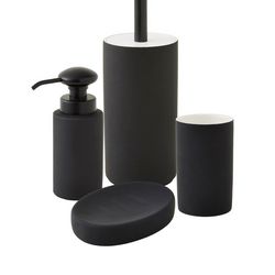 Set de salle de bain noir - CITY - LEVASSEURCe set de salle de bain en céramique, fait partie de la gamme CITY. Il contient un distributeur de savon, un porte savon, un porte brosse à dents et une brosse WC.Cette gamme est conçue pour transformer vos accessoires de salle de bains en objet de décorat