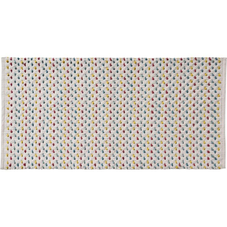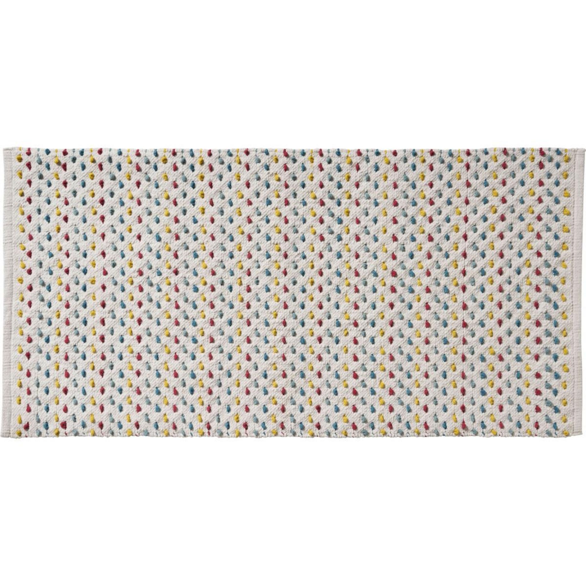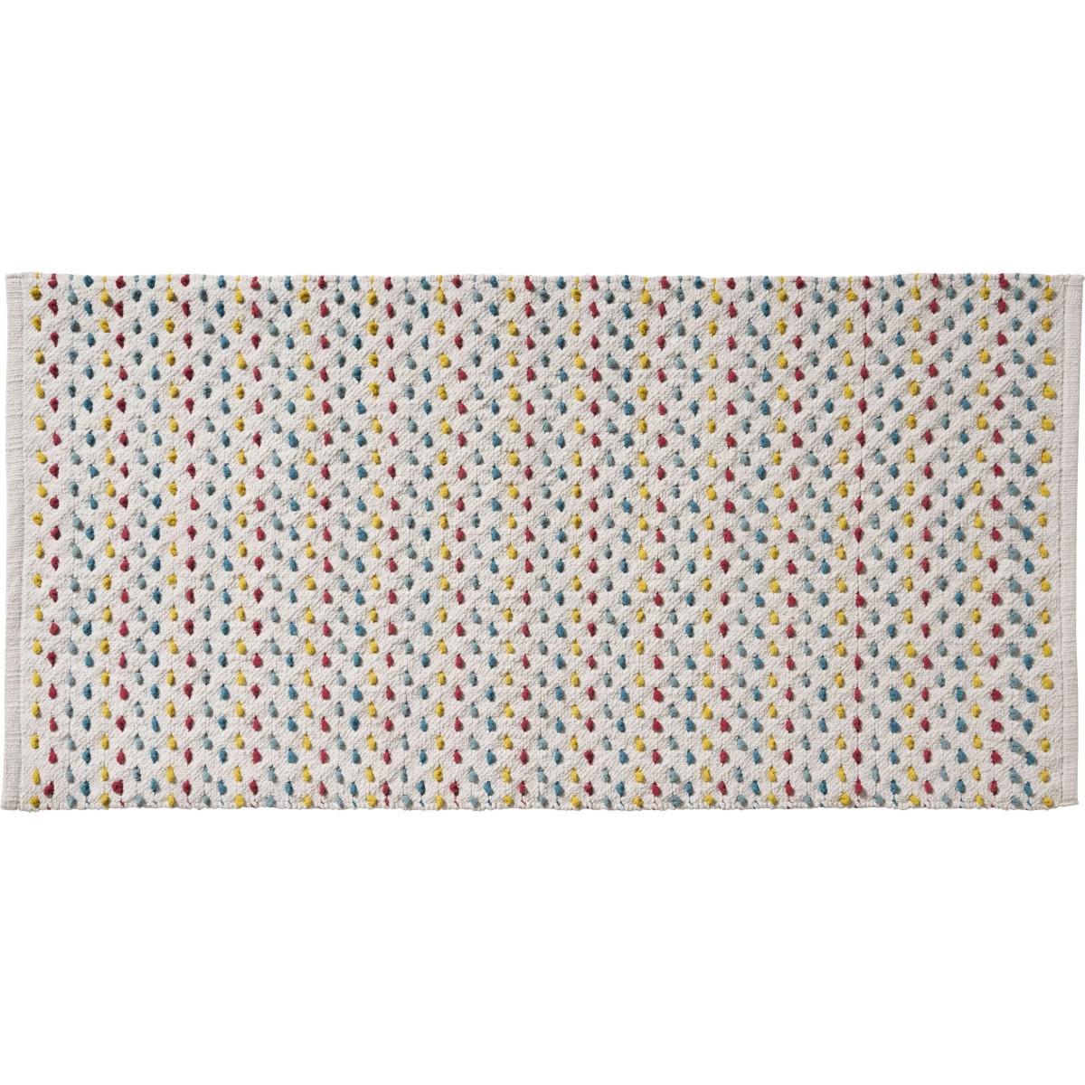 Conçu entièrement en coton, ce tapis multicolore 60x120cm très absorbant apportera une touche décoration à votre intérieur. Ce tapis est lavable à 30°en machine. Ne pas le repasser.CARACTERISTIQUES PRODUIT : Matière : 100% CotonDimensions : 60x120cmEpaisseur : 1cmTrès absorbant Motifs confettiConfec