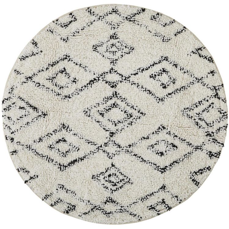 Conçu entièrement en coton, ce tapis de forme ronde 70x70cm apportera une touche décoration ethnique dans votre intérieur. Ce tapis antidérapant est lavable à 30°C en machine. Ne pas le repasser.