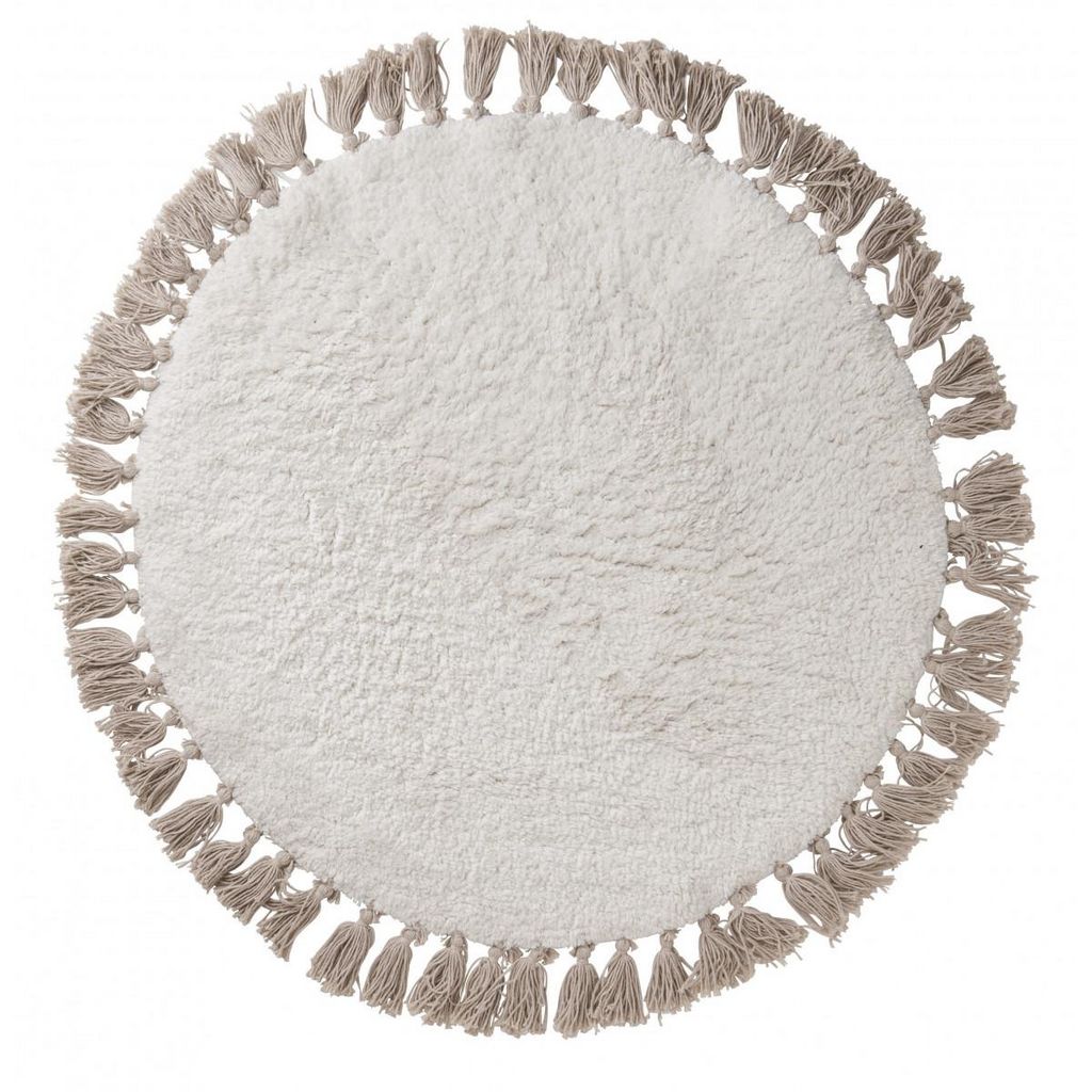 Tapis déco enfant rond à pompons en coton 70x70cm