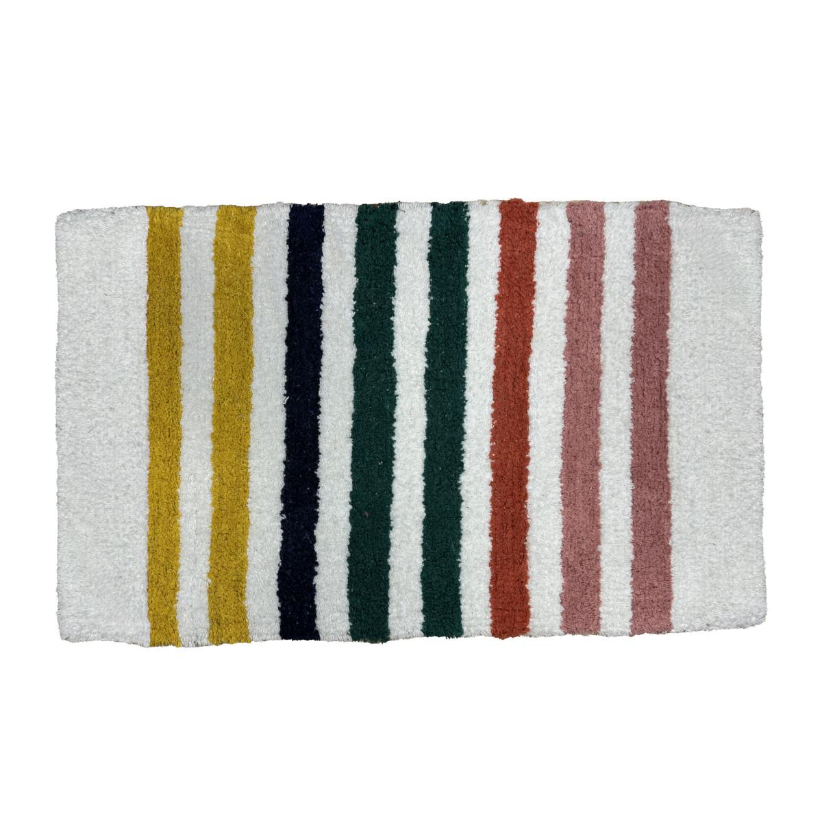 Ajoutez une touche de couleur et de douceur avec le tapis de bain SAMY, un modèle conçu pour les enfants et parfait pour une utilisation quotidienne. Ce tapis de 50x80 cm est à la fois pratique et décoratif, transformant la chambre de votre enfant en un espace ludique et accueillant. Avec ses rayures multicolores sur fond blanc, il apporte une note joyeuse tout en s'intégrant facilement à tout type de décoration.