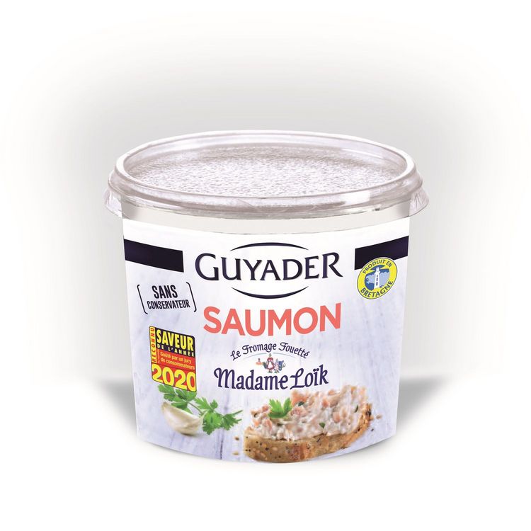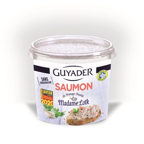 Ingrédients : SAUMON (42,5%), FROMAGE Fouetté Madame Loïk®(FROMAGE, sel de Guérande) (31,5%), LAIT,