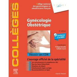 L'ouvrage En parfaite conformité avec le programme de DFASM (diplôme de formation approfondie en sciences médicales) inscrit dans la R2C cet ouvrage rassemble l'ensemble des connaissances indispensables à acquérir en Gynécologie- Obstétrique. Fidèle à l'esprit des précédentes éditions l'ouvrage comporte deux parties : - une partie Connaissances qui développe tous les items relevant de la discipline où chapitre commence systématiquement par les situations de départ un tableau de hiérarchisation des connaissances en rangs A et B une vignette clinique puis développe la thématique avec l'indication des rangs au fil du texte étayée de points clés tableaux et figures de rubriques sur les notions à retenir et un accès aux textes des recommandations et sites internet par flashcodes , - une partie Entraînement qui propose 180 questions isolées 29 mini DP et KFP ainsi que 20 TCS offrant un outil performant d'autoévaluation. Cette 6e édition encore plus didactique est une remise à jour complète de l'ensemble des données. En phase avec les pratiques et recommandations les plus récentes elle s'enrichit de nouvelles illustrations de vignettes cliniques en ouverture de chapitre utiles pour les ECOS de KFP dans la partie entraînement. Le public Les étudiants en DFASM qui souhaitent se préparer efficacement aux EDN et valider leur DFASM , les étudiants de 3e cycle pour une mise à jour de leurs connaissances. Les auteurs Cet ouvrage est le fruit du travail collectif des membres du Collège National des Gynécologues et obstétriciens français (CNGOF) présidé par Joëlle Belaisch- Allart du Collège des Enseignants de Gynécologie et Obstétrique (CEGO) présidé par Olivier Morel et de la sous-section du Conseil National des Universités (CNU) présidée par François Goffinet. La coordination a été assurée par Philippe Deruelle et Raffaèle Fauvet. Pour une maîtrise optimale des connaissances de la R2C : Les items à jour de la dernière numérotation en vigueur Pour chaque item un tableau global de hiérarchisation des connaissances A et B avec code couleurs Dans chaque chapitre au fil du texte le repérage avec balises et code couleurs des rangs de connaissances A et B et en bonus C pour aller plus loin Les situations de départ avec leur numéro