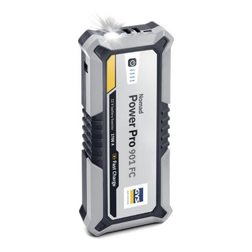 Avantages produits Booster Lithium Nomad power pro 901 FC GYS - 85879Booster lithium haute performance 3-en-1 : démarrage, alimentation autonome et lampe de secours.Puissance de démarrage de 900 A adaptée aux voitures, SUV, utilitaires, tracteurs et bateaux.Recharge ultra-rapide en seulement 1h15 gr