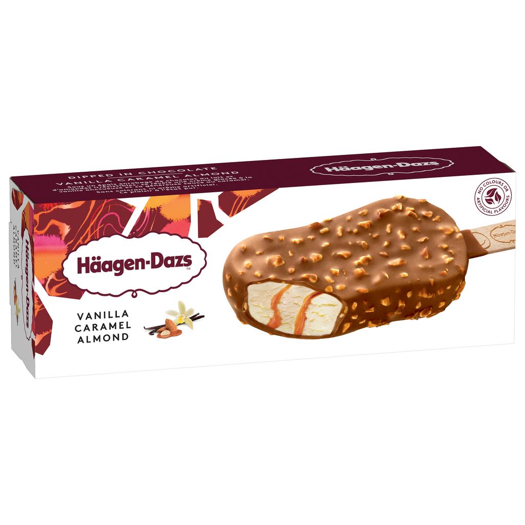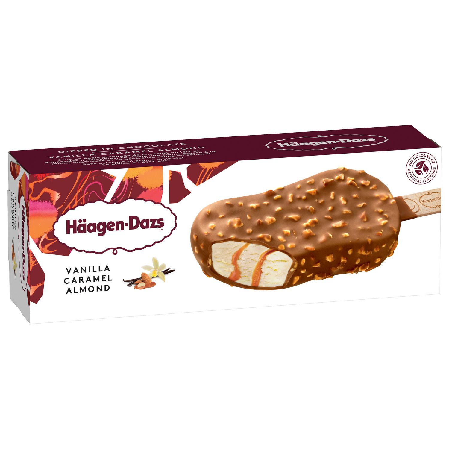 Sous un épais enrobage de chocolat au lait et d’amandes irrésistibles, se révèle une crème glacée à la vanille onctueuse et sa généreuse sauce au caramel. Sans colorant ni arôme artificiel. Le plaisir à l’état pur.