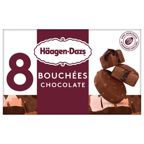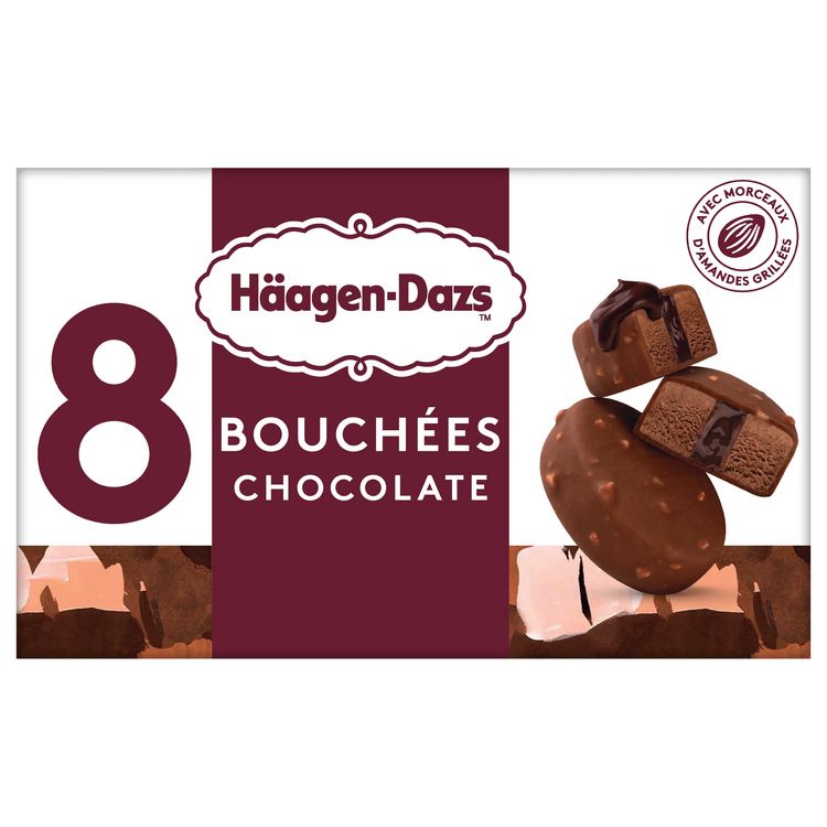 Nos nouvelles bouchées de crème glacée au chocolat sont soigneusement élaborées pour un moment de plaisir à l'état pur. Une combinaison unique entre une onctueuse crème glacée au chocolat et un délicieux coeur de sauce, le tout enrobé de chocolat de couverture et de morceaux d'amandes grillées. Chaque bouchée a été confectionnée pour être savourée avec vos proches. Une expérience de gourmandise ultime à partager. Bouchées Häagen-Dazs, à partager.