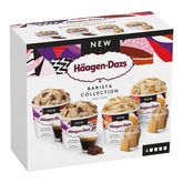 Barista collection : Brownie Macchiato : Crème glacée au café avec une sauce au café (12%) et des morceaux de brownies (7.5%). Caramel Chai Latte : Crème glacée au thé noir et aux épices avec une sauce au caramel et au gingembre (12%) et des morceaux de biscuits (8%).