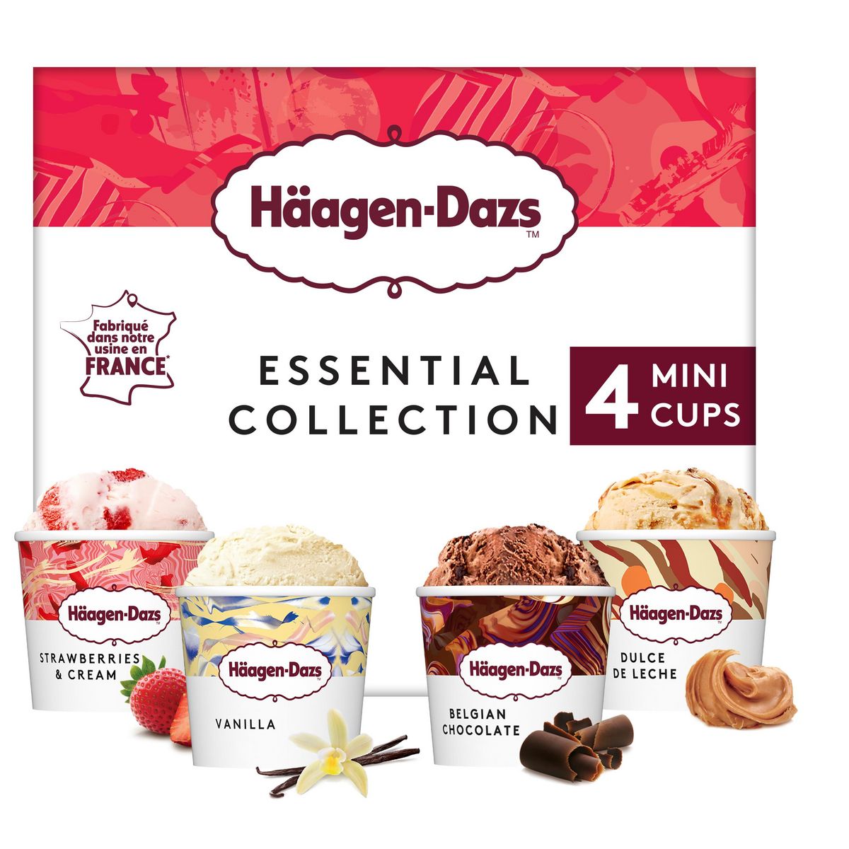 Laissez-vous tenter par notre collection des parfums essentiels d'Häagen-Dazs avec nos crèmes glacées en mini pots à la vanille, au chocolat noir belge, Strawberries & Cream et Dulce de Leche. Ces glaces sont fabriquées en France, à Tilloy-lès-Mofflaines. Toutes nos glaces sont sans conservateur, ni colorant, ni arôme artificiel.