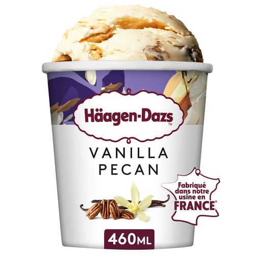 Laissez-vous tenter par notre onctueuse crème glacée en pot à la vanille et ses morceaux de noix de pécan grillés. Cette glace est fabriquée en France, à Tilloy-lès-Mofflaines. Toutes nos glaces sont sans conservateur, ni colorant, ni arôme artificiel.