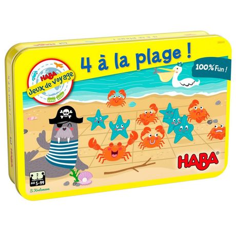 Découvrez le jeu de voyage 4 à la plage de la marque Haba.Les joueurs placent les animaux marins tactiquement sur la plage de façon à les aligner horizontalement, verticalement ou en diagonale. Le premier à aligner quatre de ses animaux marins sur la plage gagne la partie.Contenu: 2 plateaux de jeu magnétiques, 2 x 15 animaux marins aimantés, 7 bâtons, 1 règle du jeuConvient aux enfants à partir de 5 ans et sans limite d'âge Age minimum : 5 ans