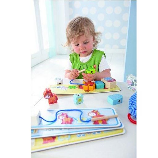 Note : la boîte peut éventuellement être en allemand (sous le titre Fädelspiel Auf dem Land ) mais les notices à l'intérieur sont multilingues (allemand, anglais, français, néerlandais, espagnol, italien). Age minimum : 18 mois