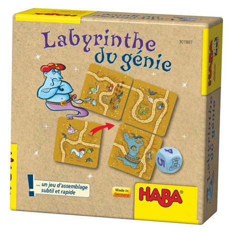 Un jeu d'assemblage subtil et rapide avec de nombreux détours ! Saurez-vous réassembler le plus vite possible la carte du labyrinthe pour récupérer les trésors du puissant génie avant vos adversaires ? Nombre de joueurs : 2 à 4.Durée du jeu : 15 min. Contenu : 30 cartes de chemin, 12 cartes de pla
