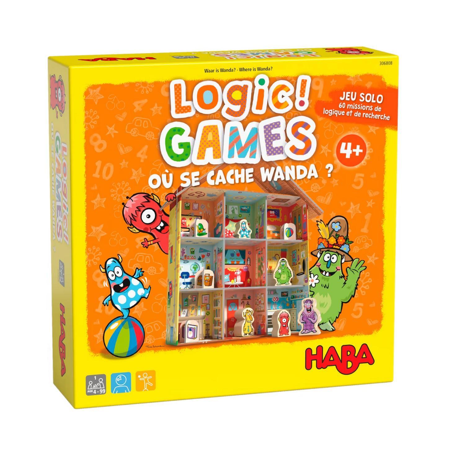Jeu de société et de casse-tête Logic Games : Où se cache Wanda ? de la marque Haba.Jeu pour un seul joueur à partir de 4 ans. Age minimum : 4 ans