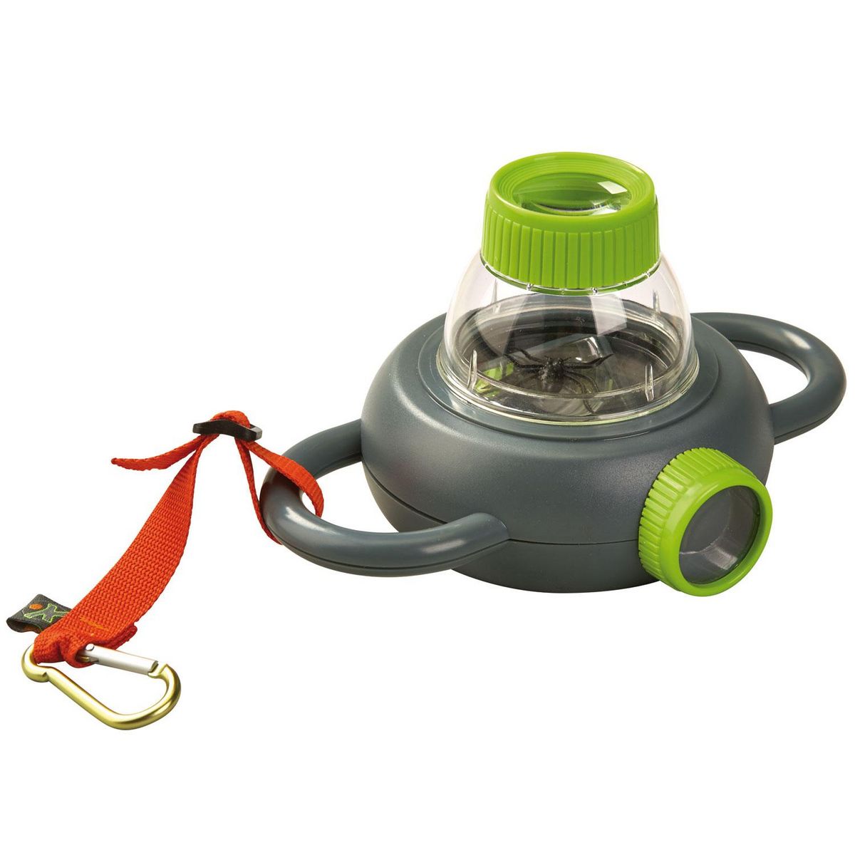 Dévissez le boîtier en plastique transparent et insérez un insecte ou un autre petit objet à l'intérieur pour pouvoir l'observer de près. Quand vous aurez terminé d'observer, n'oubliez de relâcher l'insecte dans la nature. Vous pouvez aussi tout simplement observer l'araignée en plastique incluse.