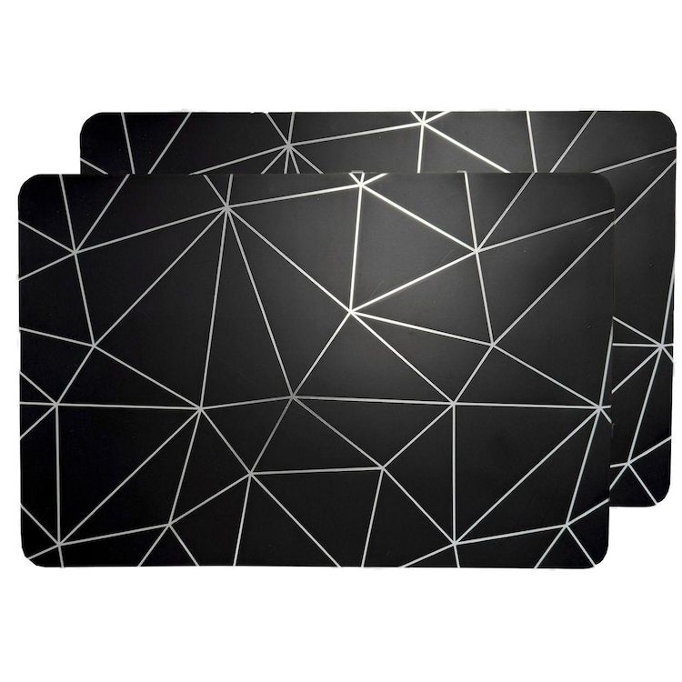 Lot de 2 sets de table avec encre métallique COPPER - 30 x 45 cm - Argent et noir