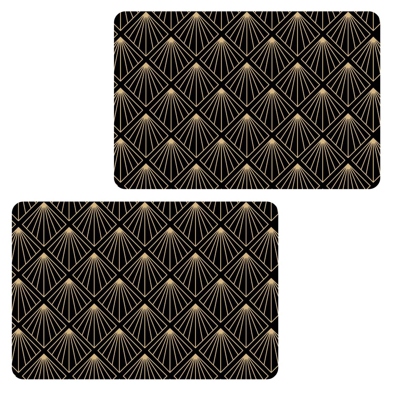 Lot de 2 sets de table avec encre métallique ELIOR - 30 x 45 cm - Or et noir