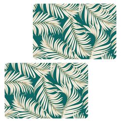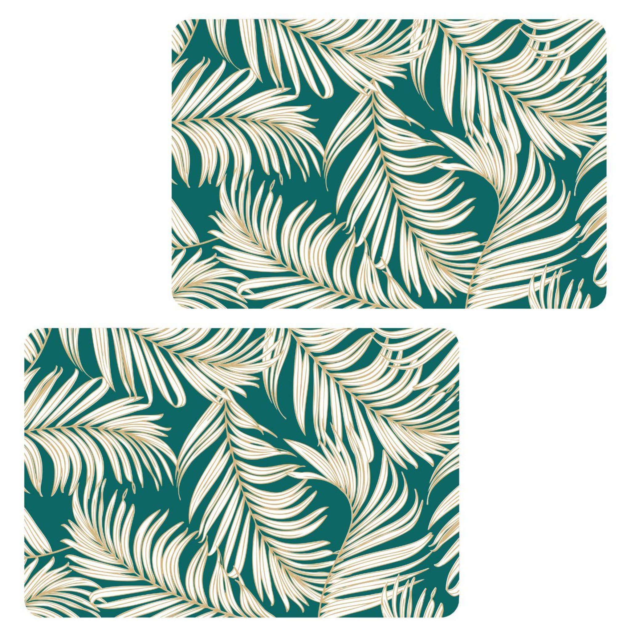 Lot de 2 sets de table motif feuillage avec encre métallique ARLO - 30 x 45 cm - Or et vert
