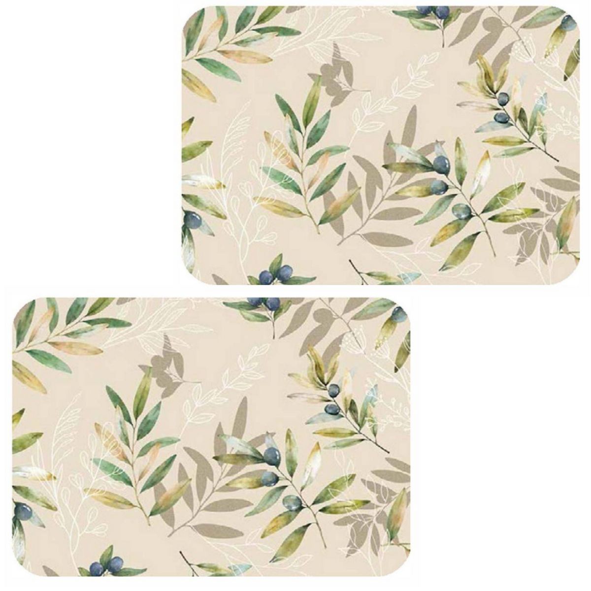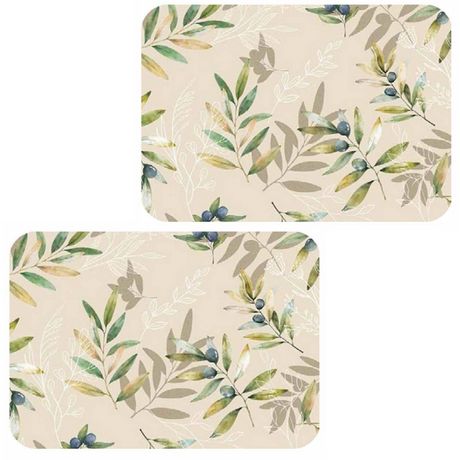 Lot de 2 sets de table motif provençal OLIBA - 28 x 43 cm - Beige et vert