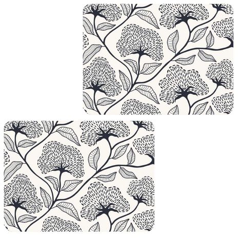 Lot de 2 sets de table motifs ginkgo CASSIA - 28 x 43 cm - Beige et noir