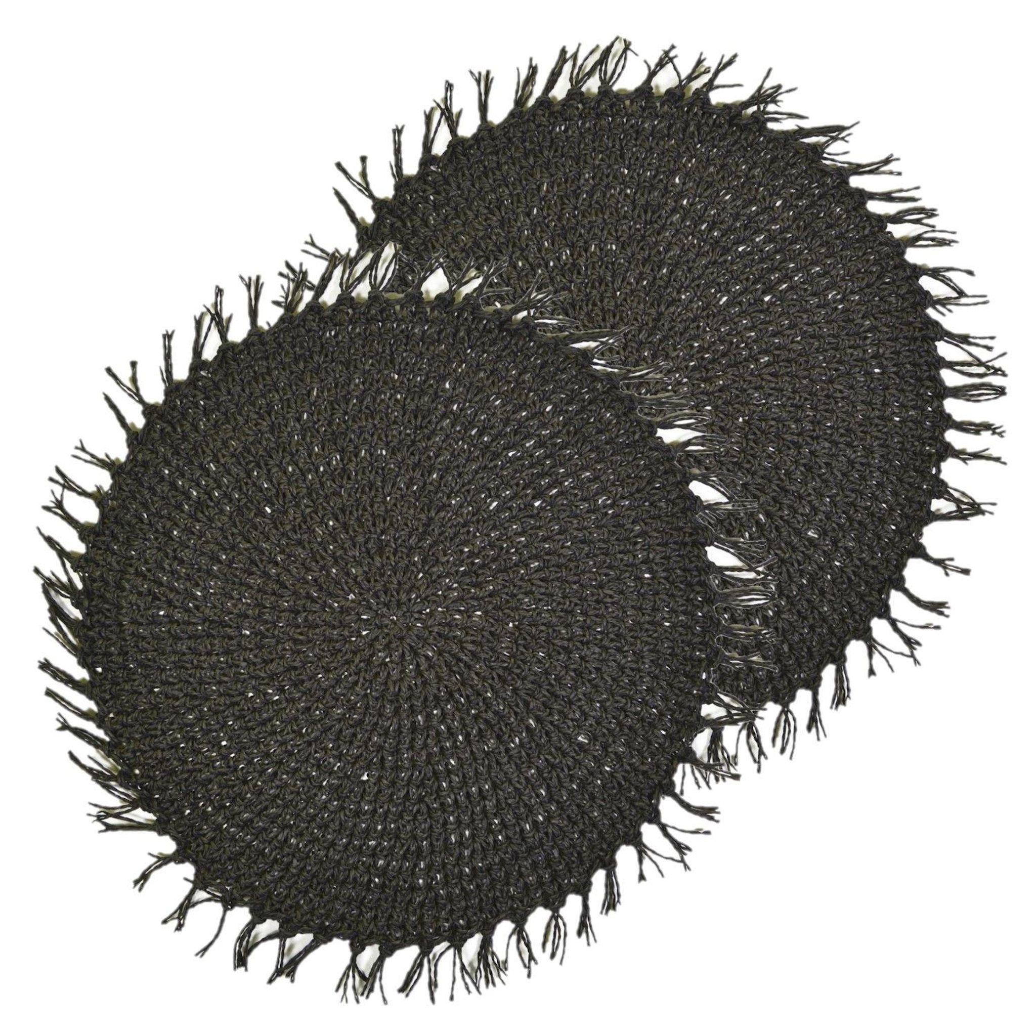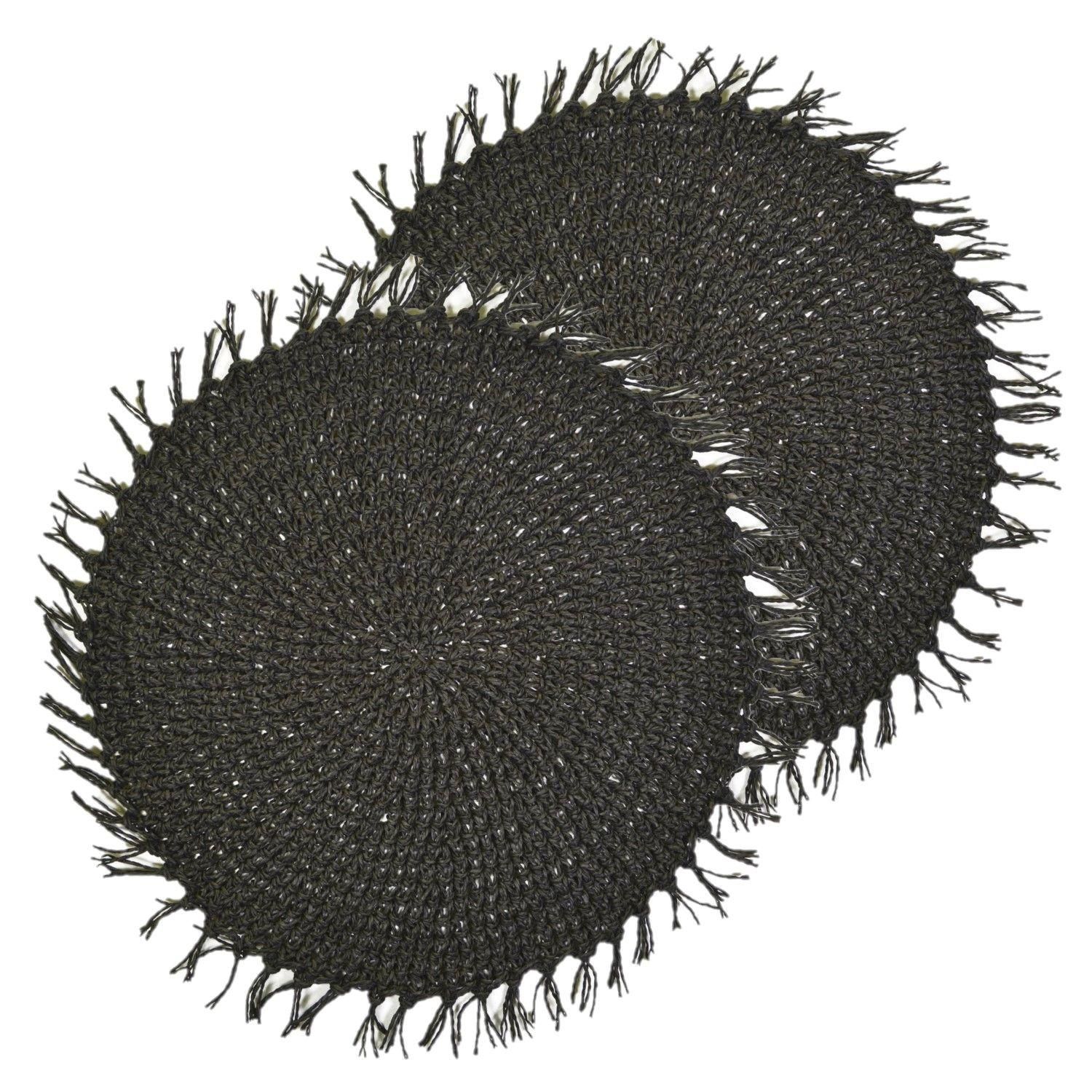 Lot de 2 sets de tables ronds en jute FILI - Diam. 38 cm - Noir