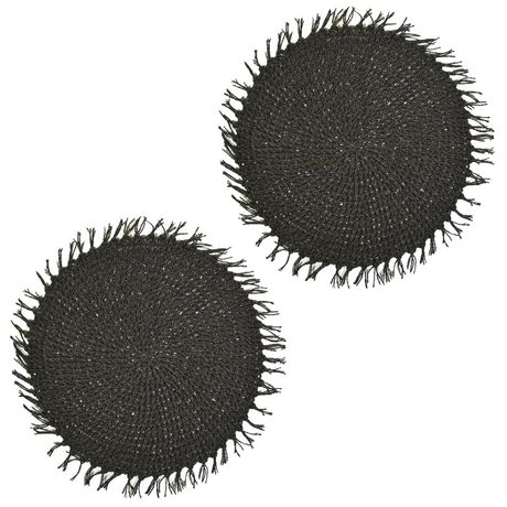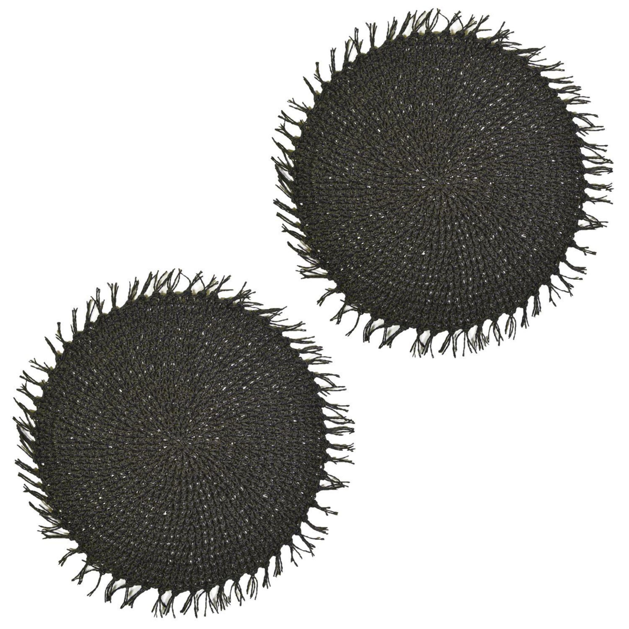 Lot de 2 sets de tables ronds en jute FILI - Diam. 38 cm - Noir