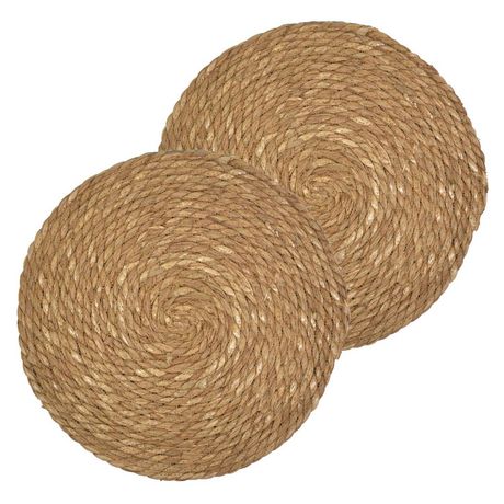 Lot de 2 sets de tables ronds en jute GRAMI - Diam. 38 cm - Marron