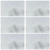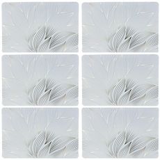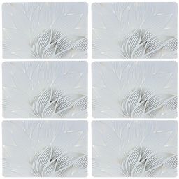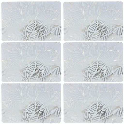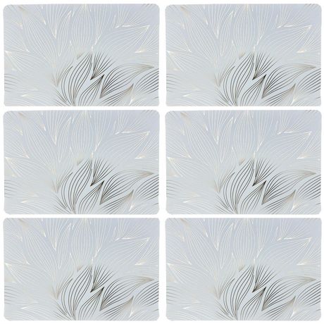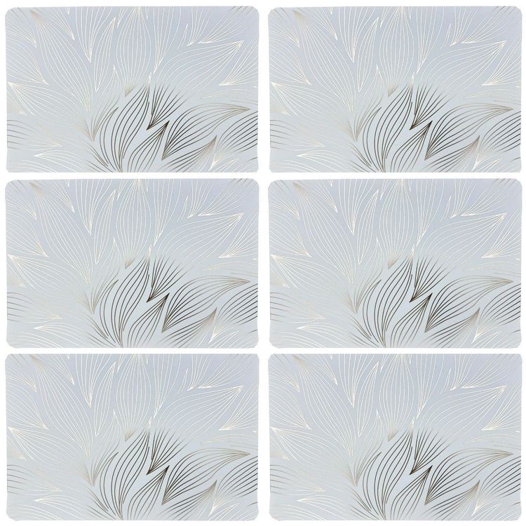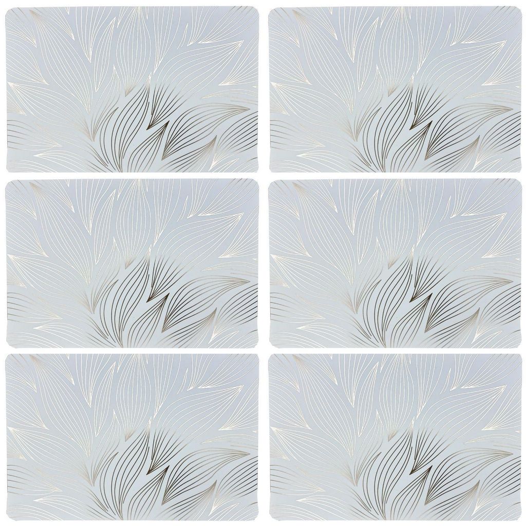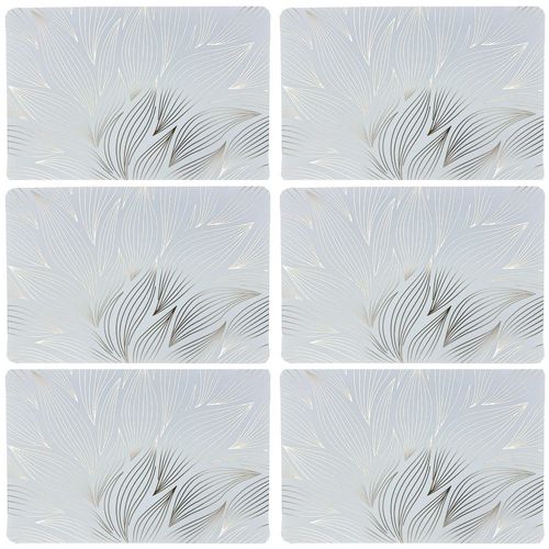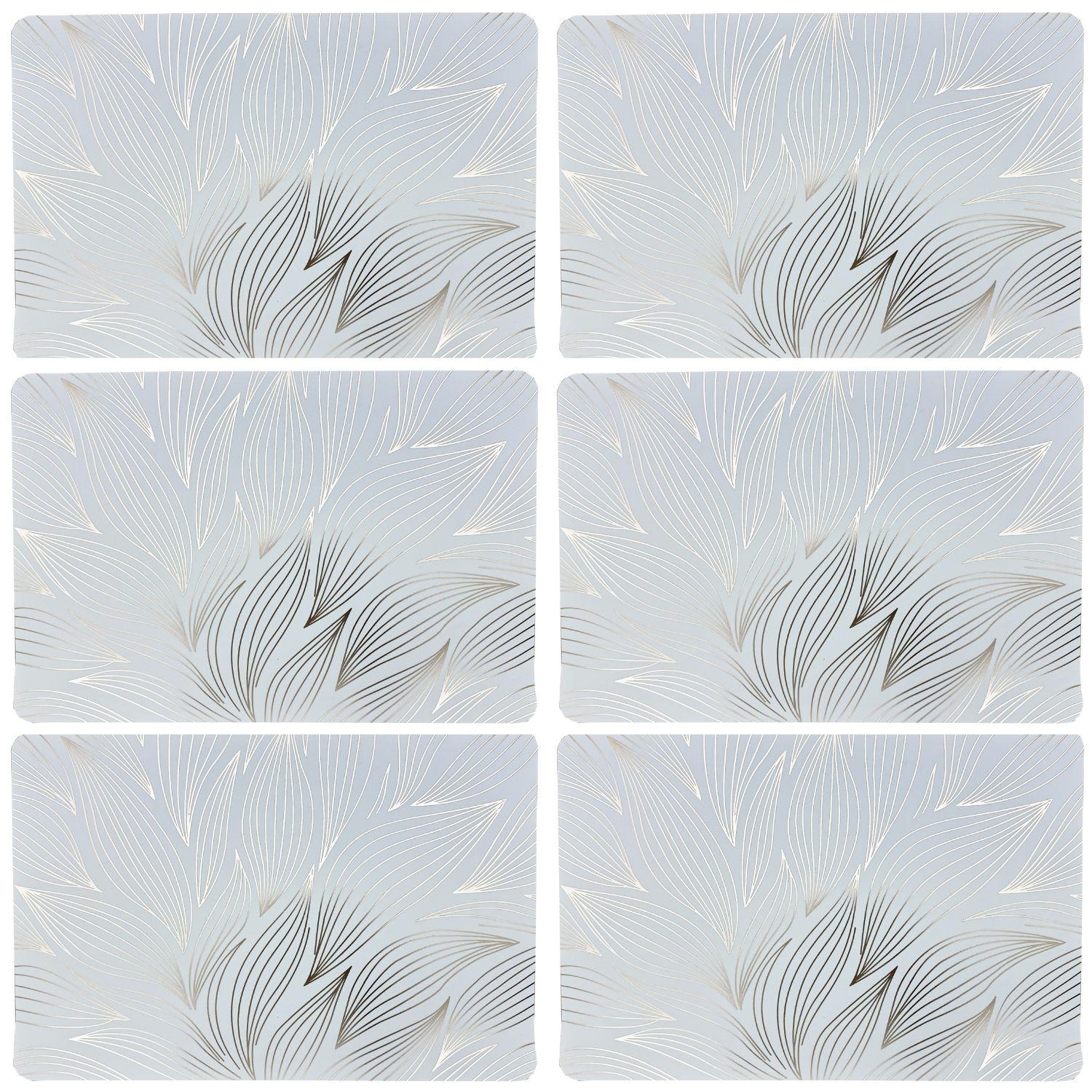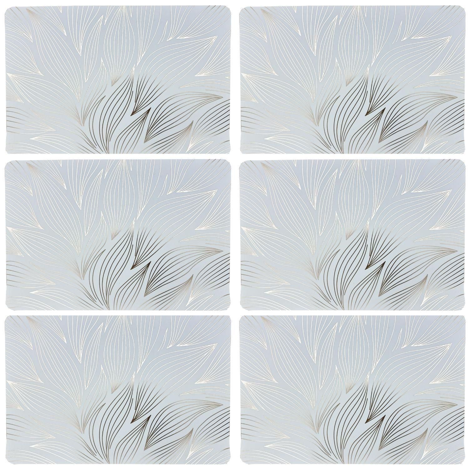 Lot de 6 sets de table motif feuillage avec encre métallique ZEYA - 30 x 45 cm - Or et blanc