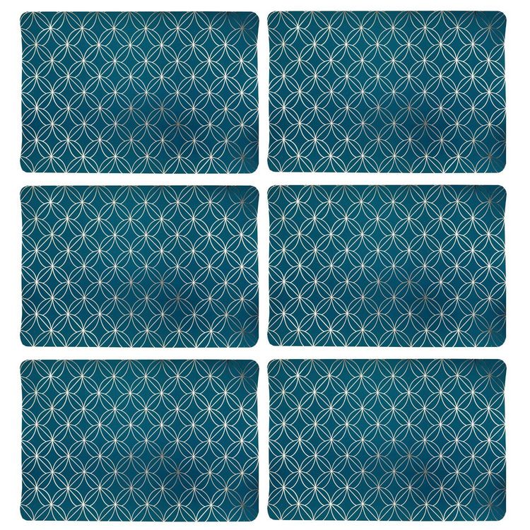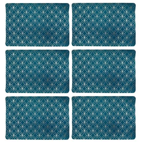 Lot de 6 sets de table motif géométrique avec encre métallique OTTO - 30 x 45 cm - Or et vert