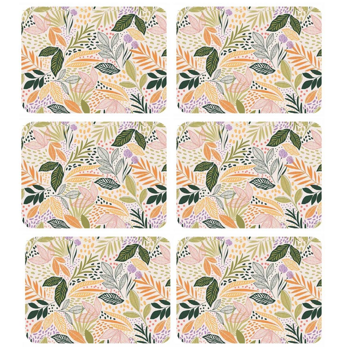 Lot de 6 sets de table motifs feuillage MAOLI - 28 x 43 cm - Multicolore